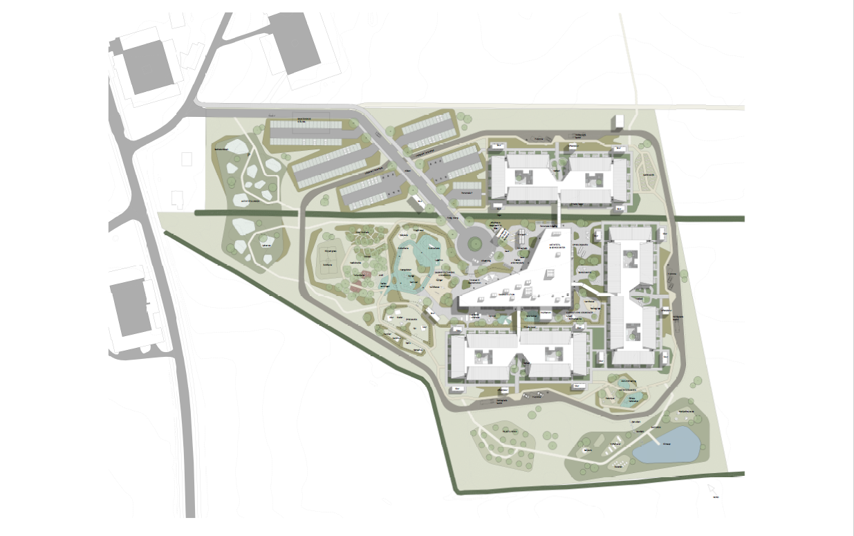 Byggeriet er bæredygtigt og kommer til at ligge på en 78.000 m2 stor grund ved siden af kirken i Gauerslund. Plejehjemsdelen kommer til at bestå af selvstændige boenheder, som ligner små gårde og derfor passer godt ind i det landlige miljø. Her skal de ældre bo og have deres hverdag.
