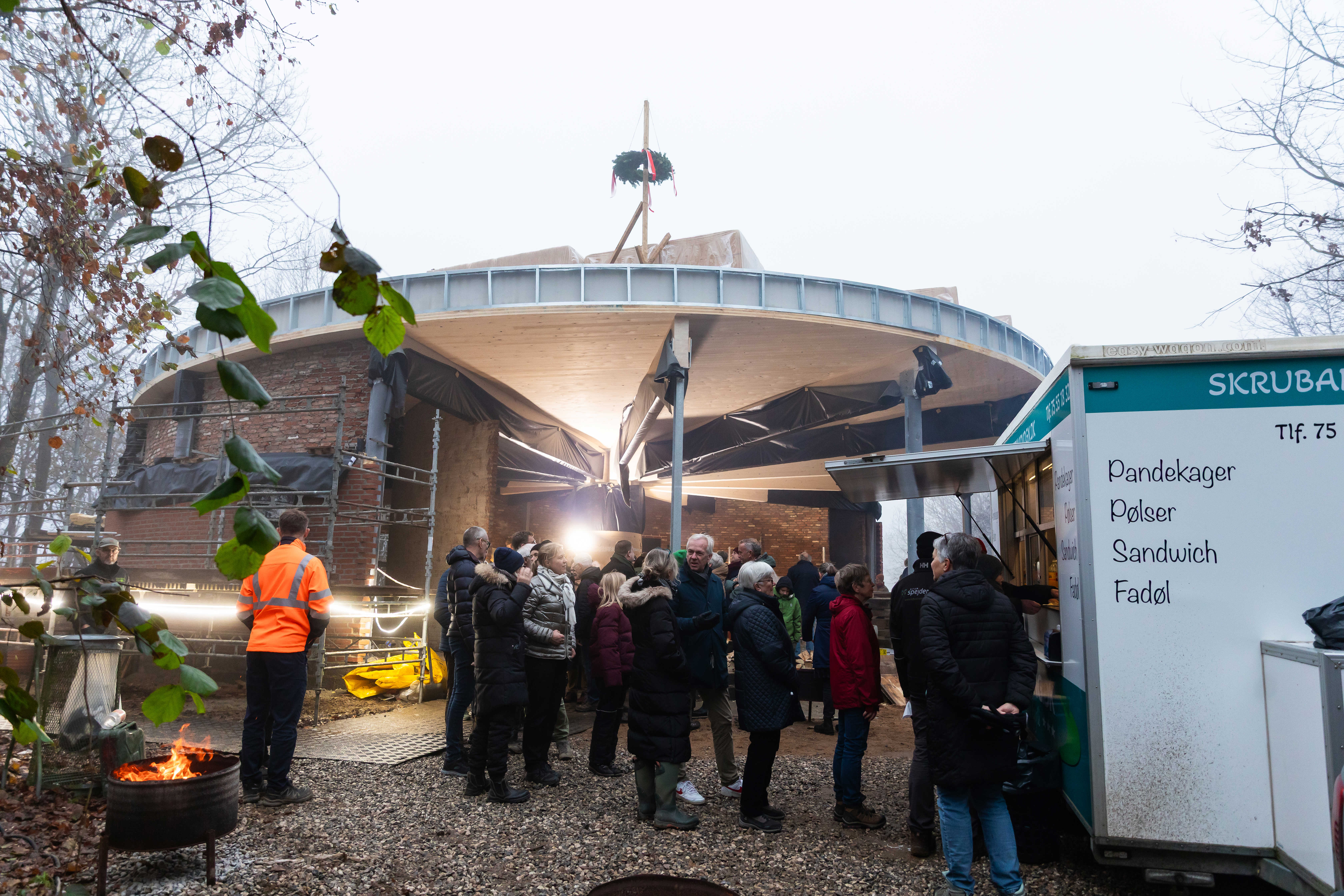 Stemningsfulde omgivelser med bål, fakler og tåge satte rammen, da oplevelsescenter Egtvedpigens Verden nåede en vigtig milepæl med rejsegilde den 26. november
